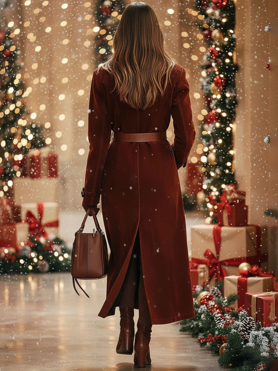 This coat can be dressed up for formal events or casually worn for everyday wear. Pair it with jeans and boots for a smart. casual look. or wear it over a dress for a sophisticated evening look. Add some sleek flair to your wardrobe with this Casual Loose Vintage Angora Red Suede Pocket Lapel Maxi Coat. It combines vintage elegance with modern comfort. making it a versatile and stylish addition to your outerwear collection.