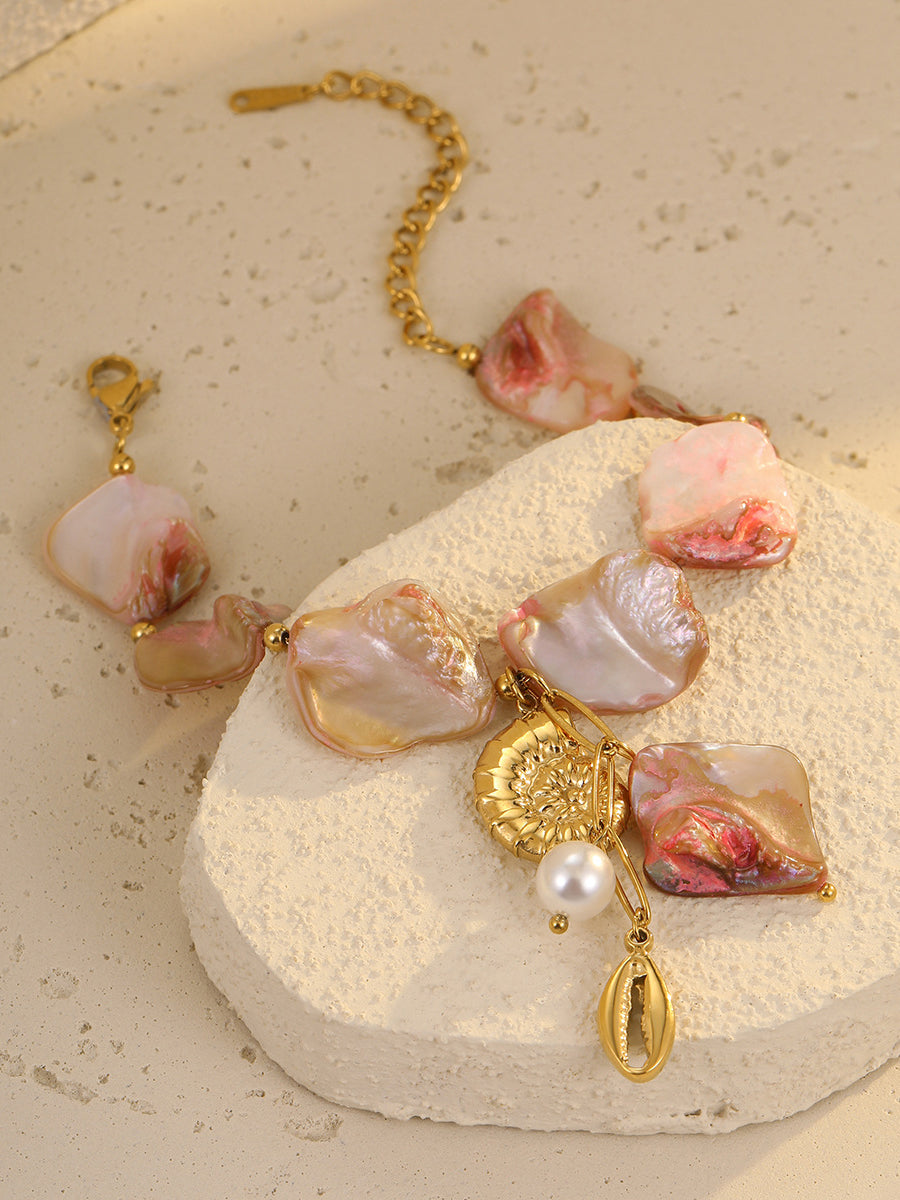 The irregular shapes and intricate details of the shell and conch elements give the bracelet a unique and artisanal feel. reminiscent of natural finds from the beach. The stainless steel material ensures the bracelet is resistant to tarnish and perfect for daily wear. providing both longevity and a polished appearance.